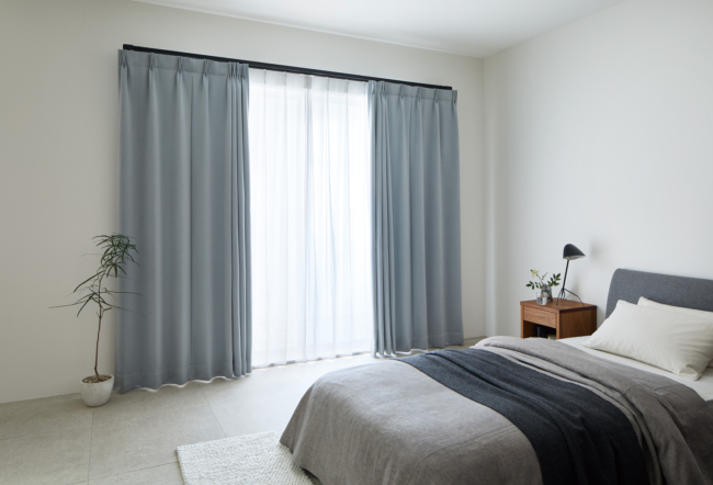 同製品は、住宅空間になじむシンプルなデザインとコンパクト & 静音設計。リビングや寝室にもすっきりと収まり、空間に自然に調和する他、手引きレールよりも操作音が静かなため、寝室などでも快適に使用できる。